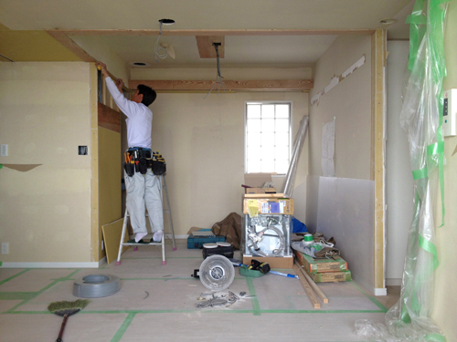 house a/u construction 02 2013/04/02 · by ryoaso · in construction. · construction 2013.04.01 マンション一室のLDKを中心とした内装改修工事。 木造作工事が終了し、本日より電気工事へ。 建築は専門職ばかりで、業種ごとに職人さんが入れ替わります。 現場監督と設計者で図面通りに進んでいるかを確認していきます。 新規に制作したタモ材の建具(引戸)や、家具ができていました! 無塗装で現場に搬入、後日お持ちの家具の色合いに合せて塗装する予定です。 仕上りが楽しみです! Share this: Click to share on Facebook (Opens in new window) Facebook Click to share on X (Opens in new window) X Click to share on Pinterest (Opens in new window) Pinterest Click to share on Tumblr (Opens in new window) Tumblr Click to share on Threads (Opens in new window) Threads Like Loading...