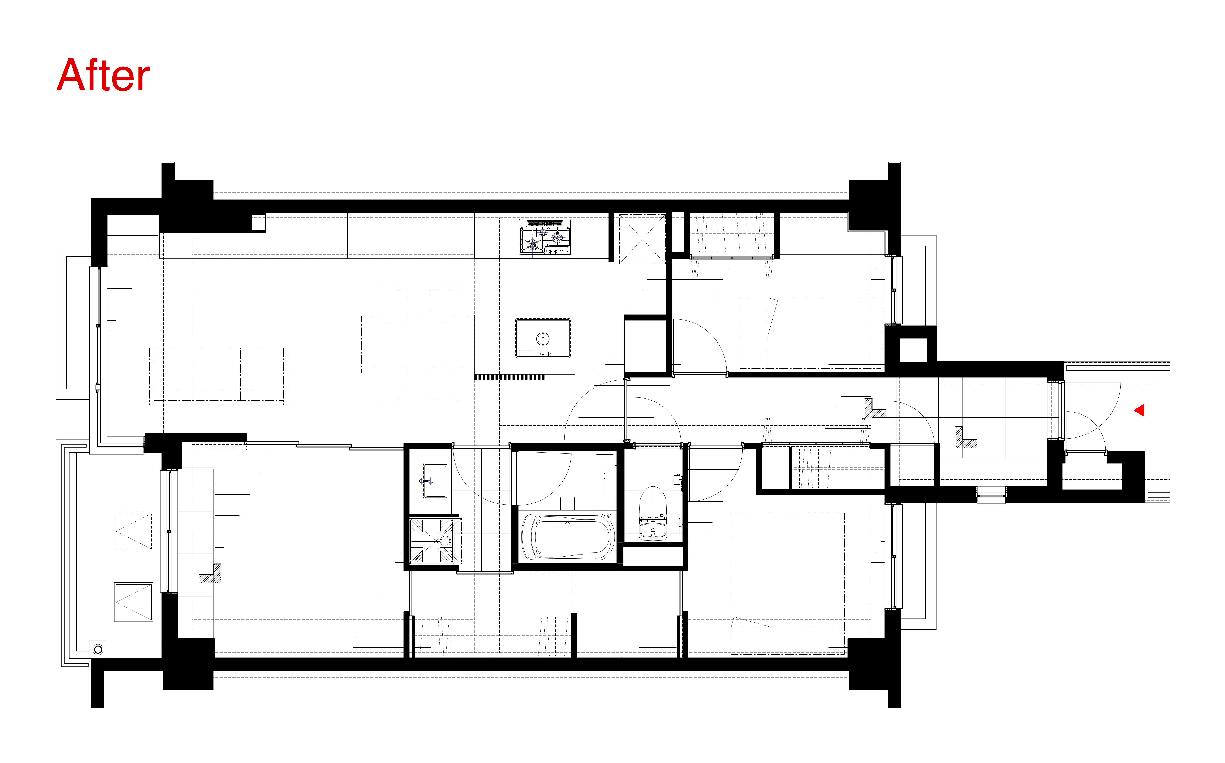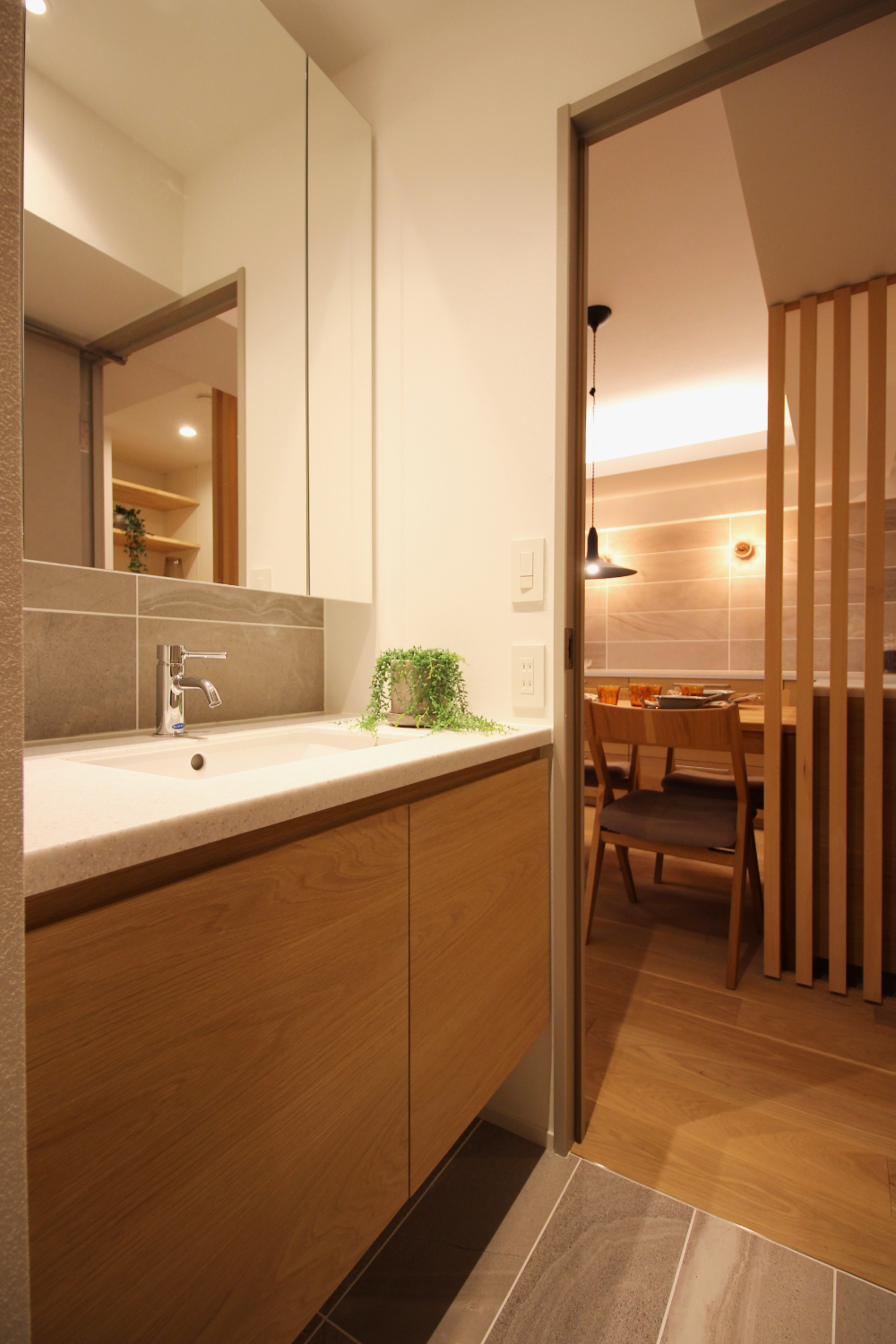 水回りのプランを改善し、寝室⇄WIC⇄洗面室⇄キッチンの動線を確保し、多様な生活スタイルに対応したプランを実現した。